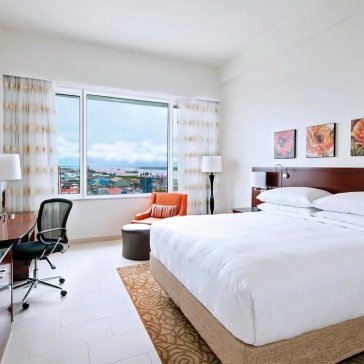 With 138 meticulously designed guest rooms, ideal for both business and leisure travelers. The hotel's restaurant and rooftop terrace with a unique 360-degree view guarantee a unique culinary and spatial experience in Georgetown.